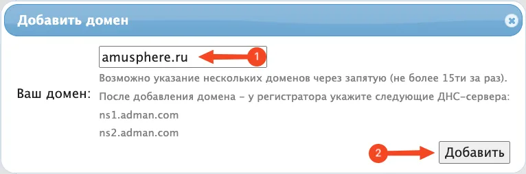 Вводим имя своего домена (в данном примере будем использовать домен amusphere.ru).